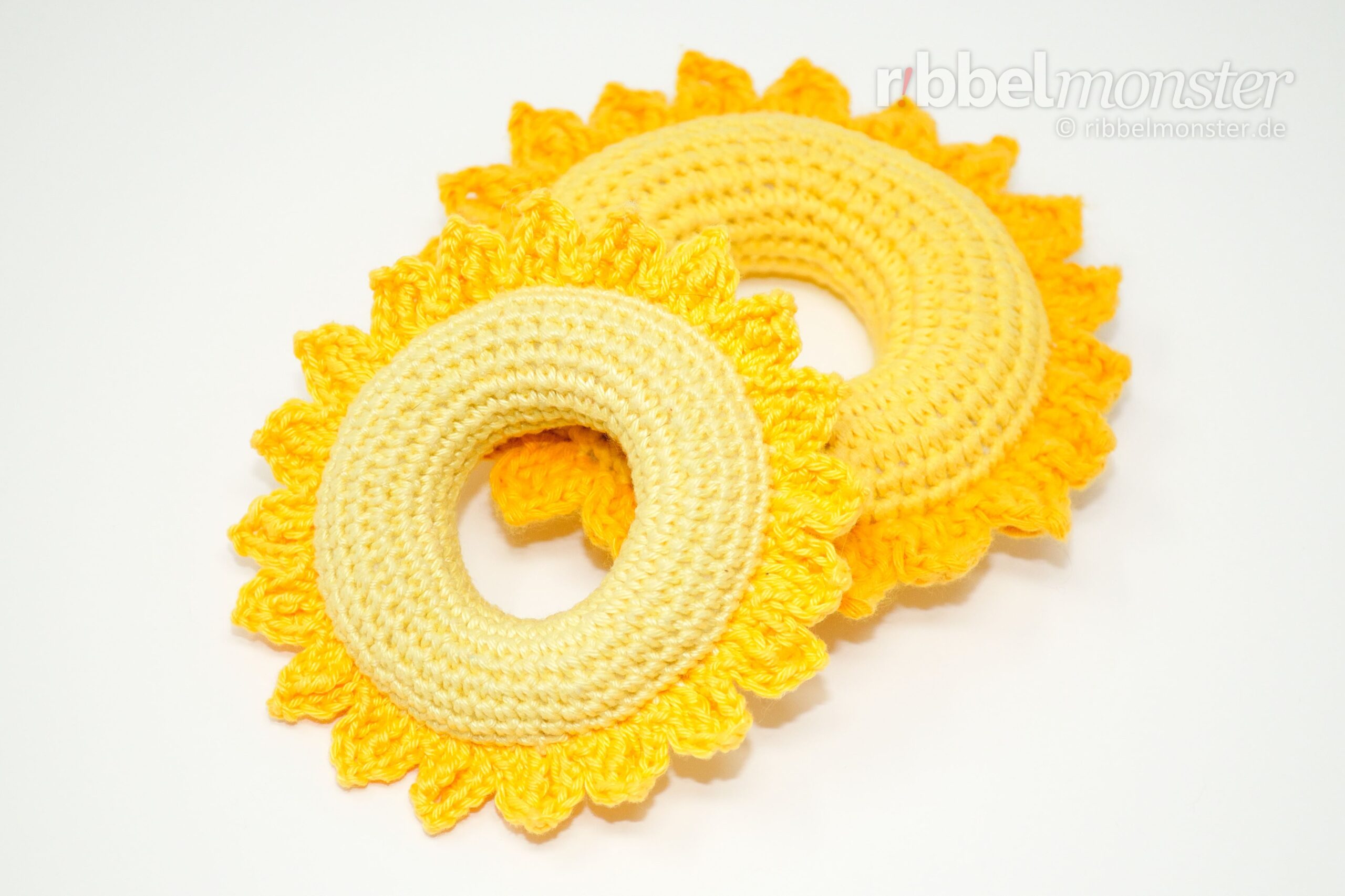 Irgendwie verbindet man das hereinbrechende Frühjahr auch immer mit etwas Neuem, mit Geburt und Kindern. So geht es mir zumindest und deshalb sind auch die Anleitungen für einen einfachen Greifling mit Ringen und einen Greifling in Sonnenform für neue Erdenbürger entstanden.