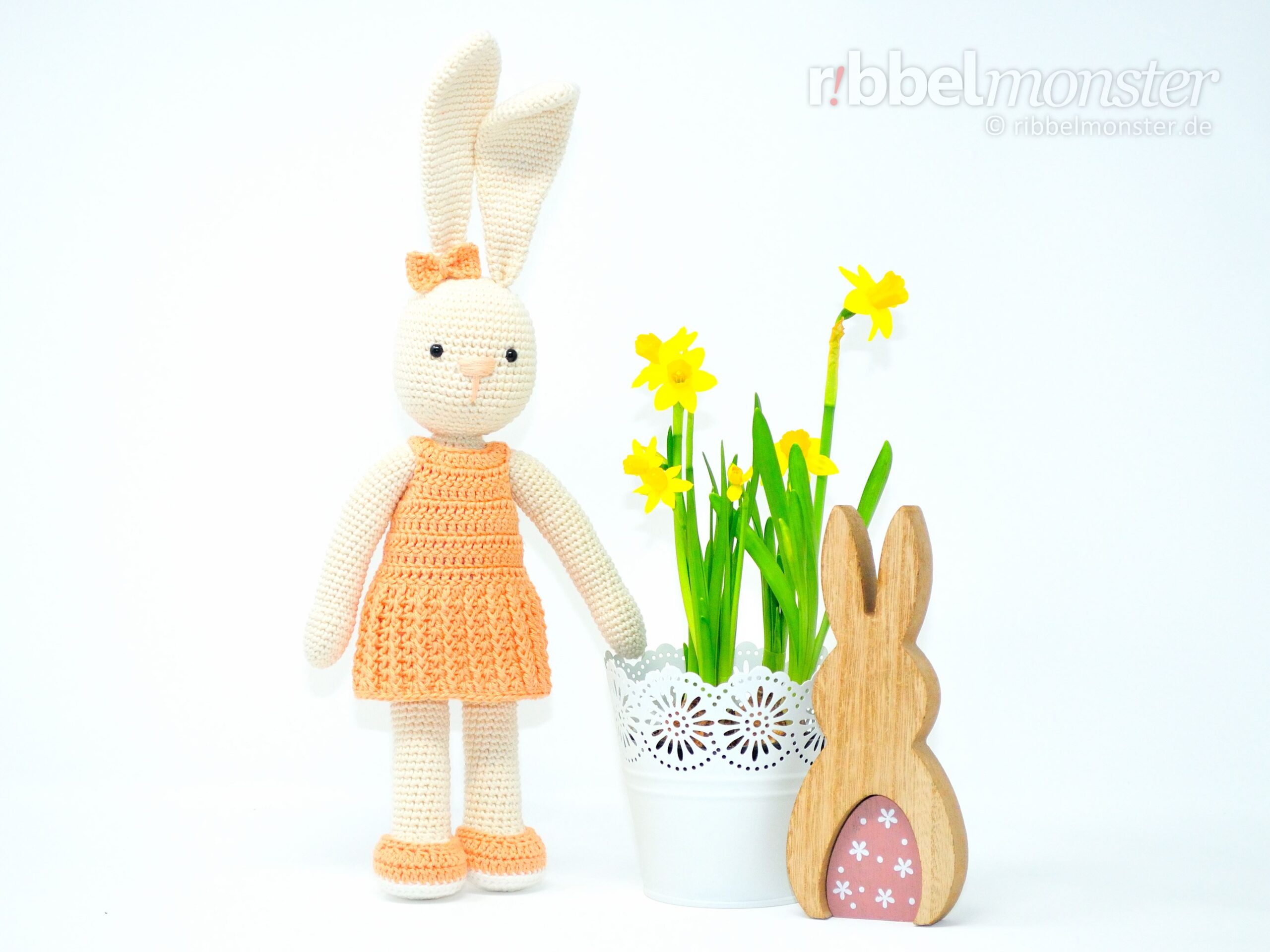 Die ersten Anleitungen der Slenana Serie sind das Schlenkerhäschen Milly und das Kleid „Miranda“.