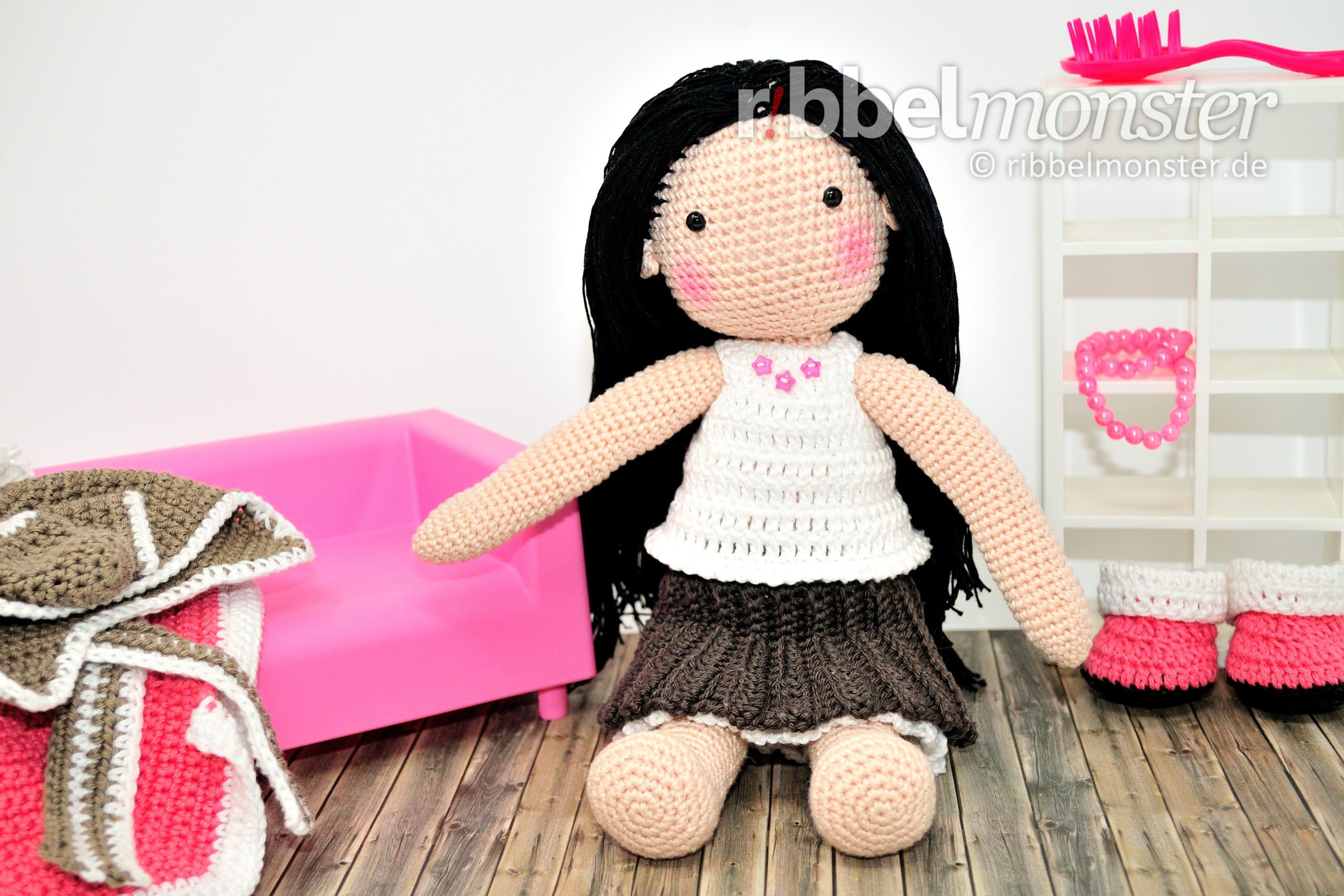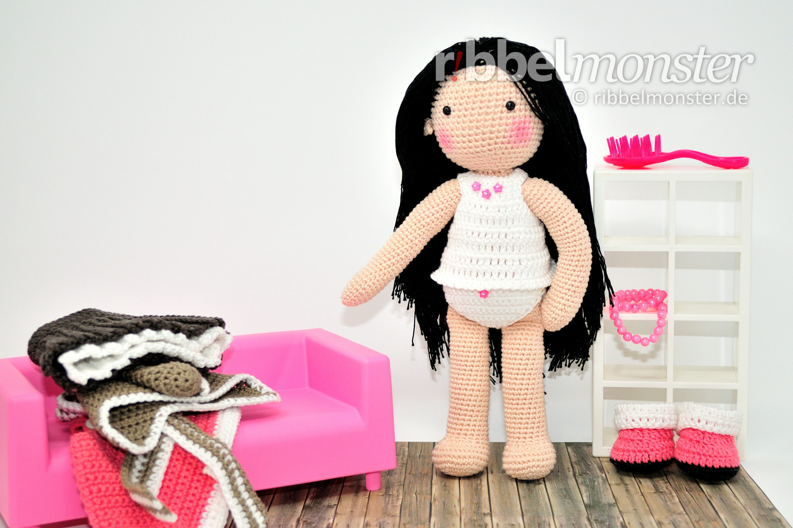 Die Slenana Serie steht für Schlenkertiere und Schlenkerpüppchen mit einheitlichen menschlichen Proportionen und langen dicken Armen und Beinen. Dadurch eignen sich die Amigurumis der Serie nicht nur ideal zum tragen und schlenkern für Kinder. Allen Slenana Amigurumis passen so auch alle Kleidungsstücke. Zugegeben mit der Idee ist wohl das Kind in mir durchgegangen, aber ich denke die Serie bietet damit alles was sich Puppeneltern wünschen!